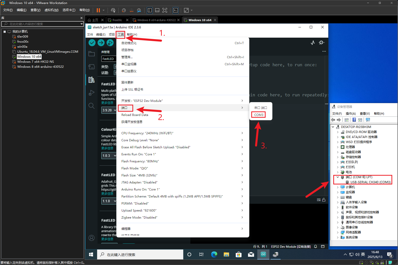 - 工具 (Tools) > 端口 (Port) 中,选择刚才在设备管理器中看到的那个 COM 端口。
