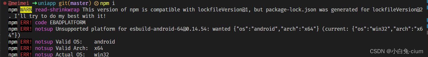 npm i 报错:This version of npm is compatible with lockfileVersion@1, but package-lock.json lock.json是源于lockfileVersion@2;npm是lockfileVersion@1的,但。方法1、升级一下npm。