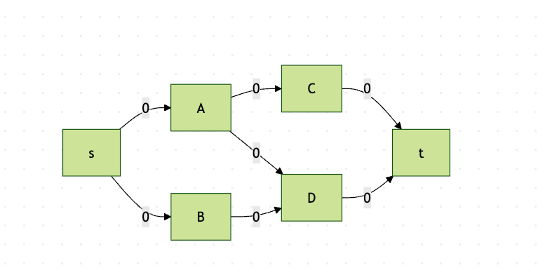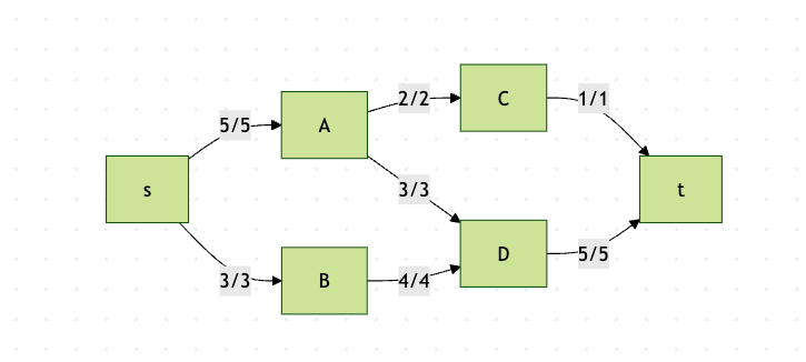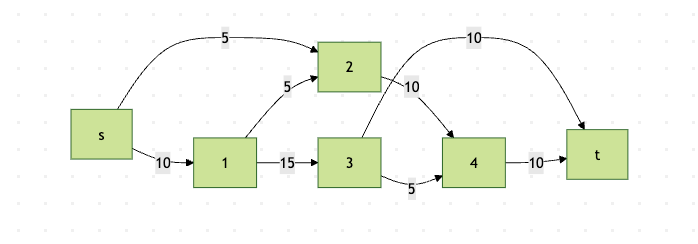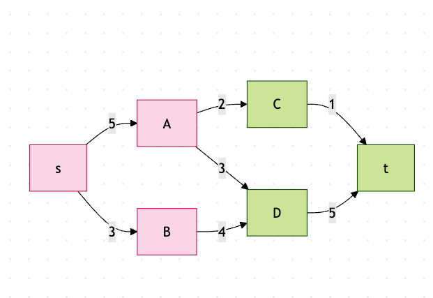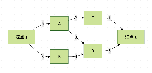 以上流程图展示了一个简单的网络流示例,其中s是源点,t是汇点,其他节点是中间节点,边上的数字表示容量。