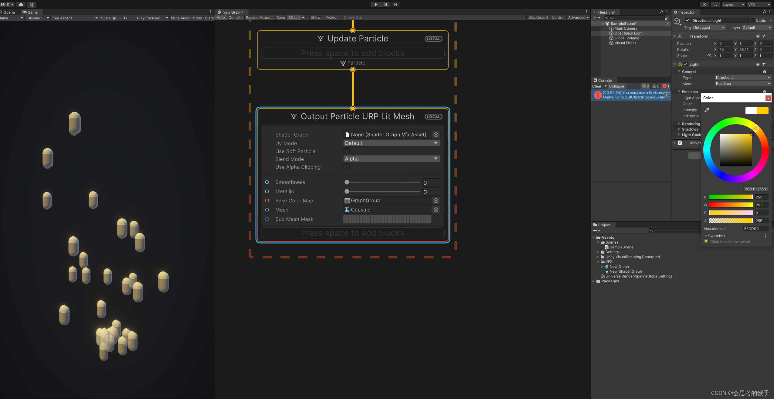 本文详细介绍了Unity视觉效果图中的Output Particle模块,包括输出粒子图元如四边形、三角形和八边形,以及粒子前向贴花上下文的使用。内容涵盖各种图元类型、渲染设置和上下文属性,讨论了如何在不同场景中应用这些技术。此外,还提及了受灯光影响的输出类型和渲染管道的兼容性问题。