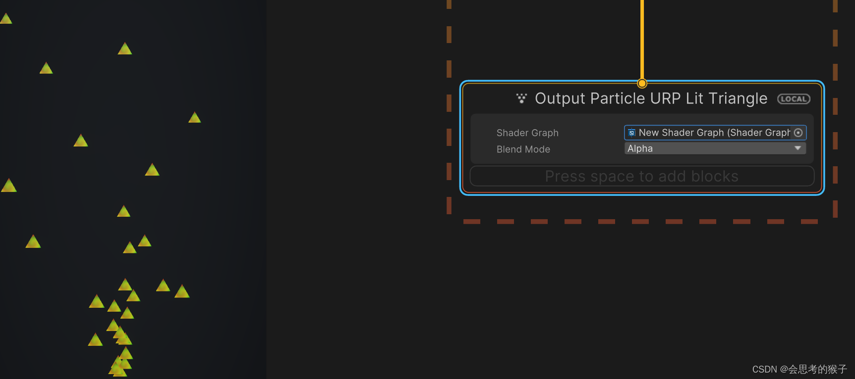 菜单路径 : Context > Output Particle [Primitive] (Output Particle (Lit) Quad, Output Particle (Lit) Triangle, Output Particle (Lit) Octagon)