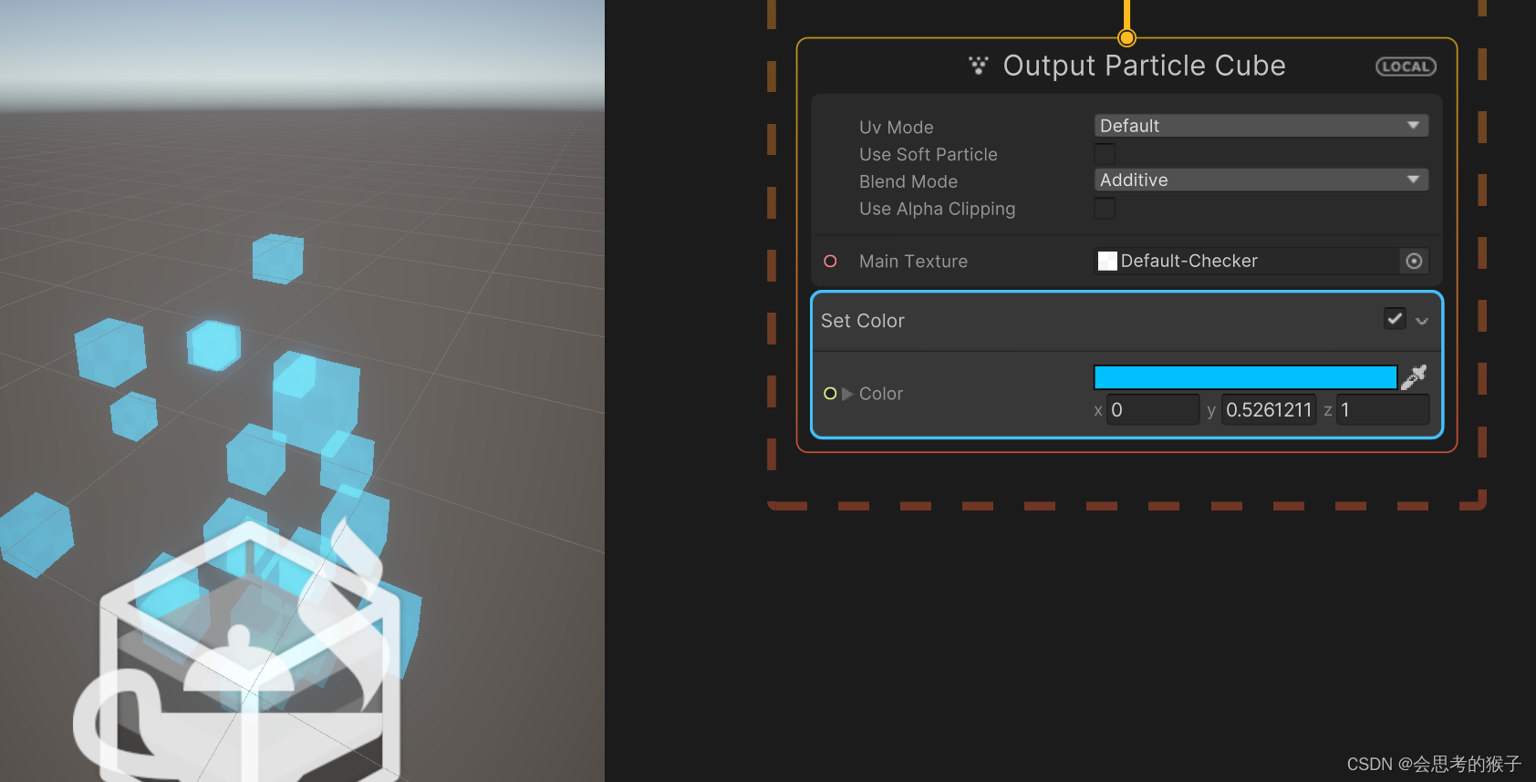 •基色和自发光:使用颜色属性作为粒子的基色和自发光颜色。使用自发光 布尔 (检查器)指示输出是否支持发射粒子。启用此设置以公开可用于使粒子发光的Emissive Color属性。 两面性 布尔 (检查器)指示单面粒子(如四边形)是否应从两侧渲染。当从后面观察粒子时,这会翻转粒子的法线,这意味着它们也能接收到正确的光照信息。