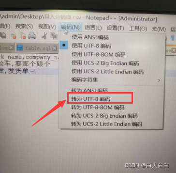 1、把csv文件在notepad++中打开;