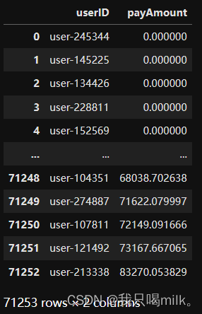 通过观察发现付款金额最小值为负数,此处应该为0才对,这个问题稍后处理。