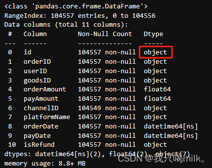 # 订单顺序编号的数据类型需要改成object