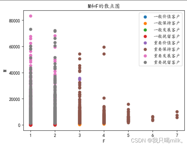 plt.title('M和F的散点图')