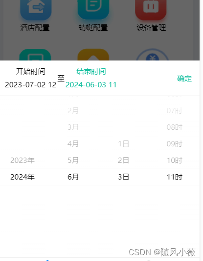 基于uni-app的 年-月-日 时 时间日期范围控件 一个使用 uni-app 开发的日期时间选择器组件,它包含了一个遮罩层(pickerMask)和一个日期时间选择器弹窗(picker-box这个组件允许用户选择一个时间范围,包括年、月、日和小时。