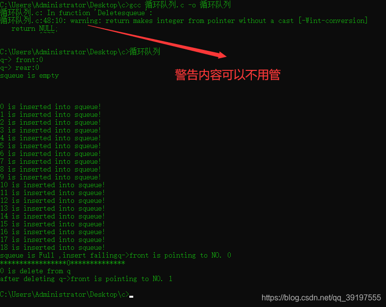 printf("squeue is empty, delete failing");