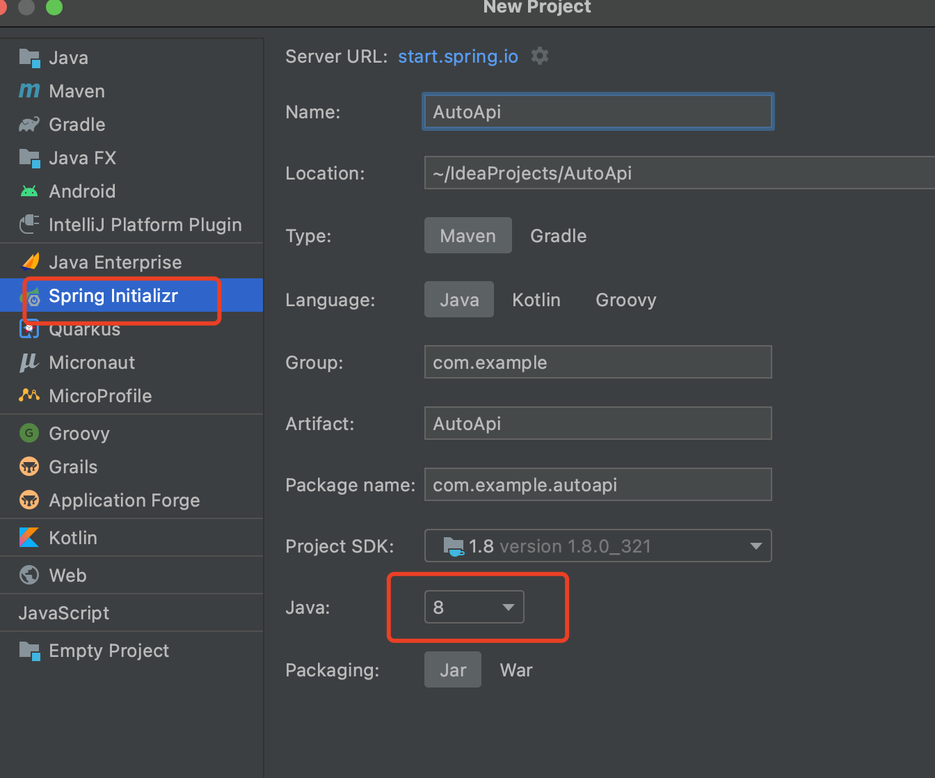 新建一个spring boot项目,项目名称为AutoApi。(注意看图)