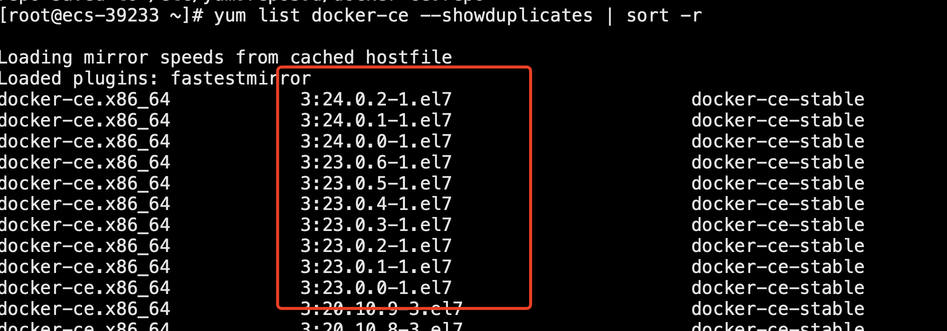 2、安装特定版本。先找到我们需要的版本号,如 3:24.0.2-1.el7