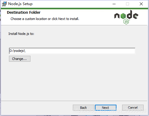 3)选择nodejs安装路径,默认是c盘,我这里改成d盘