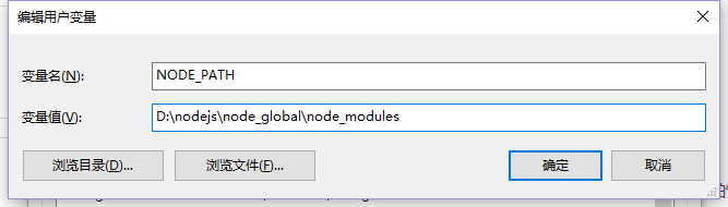 在环境变量的配置界面配置NODE_PATH,值填D:\nodejs\node_global\node_modules