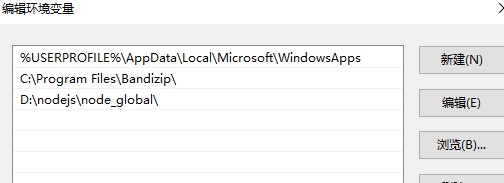 还需要修改一些nodejs默认的模块调用路径,因为模块的安装位置变了,如果nodejs的命令还到原来的位置去找,肯定是找不到安装的模块了。选择Path,然后点击编辑,然后选择npm那个,修改成D:\nodejs\node_global\。