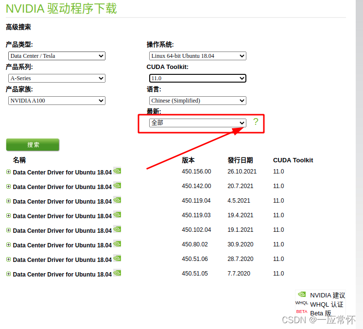 - 然后去英伟达官网下载对应的**.run**文件 ,需要查找旧版驱动的小伙伴可以点击这里: