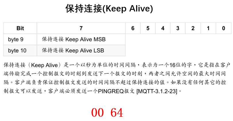 综上我们可得有效报头为: 00 04 4D 51 54 54 04 C2 00 64