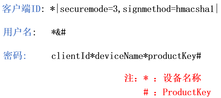 客户端ID : *|securemode=3,signmethod=hmacsha1|