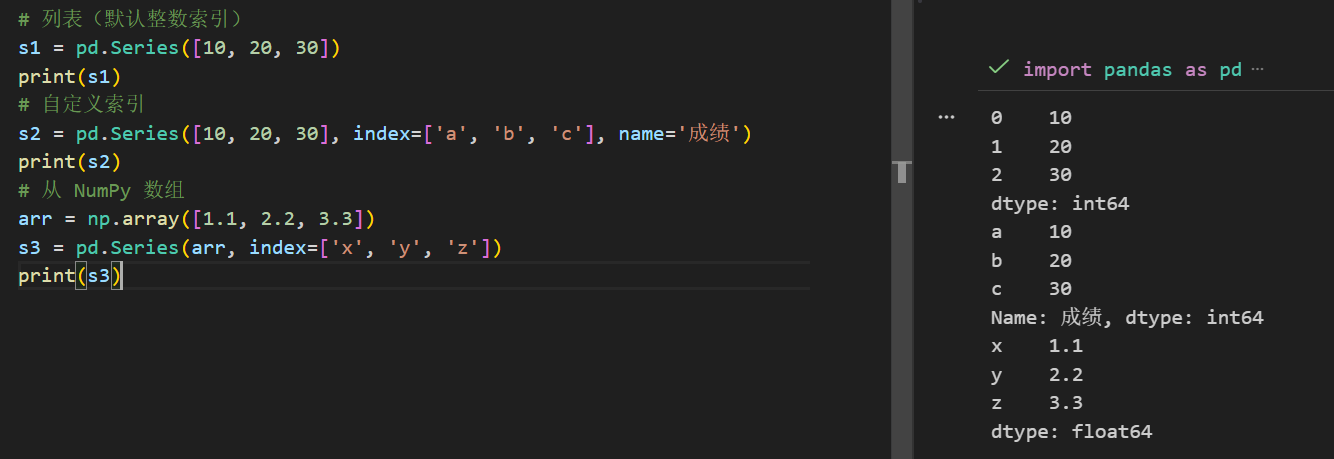 s2 = pd.Series([10, 20, 30], index=['a', 'b', 'c'], name='成绩')