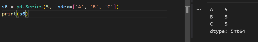 s6 = pd.Series(5, index=['A', 'B', 'C'])