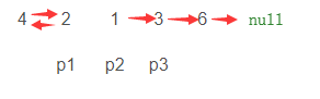 ③ 重复第 ① 步的工作,以p2节点为视角,把p2节点原本指向p3的next指针倒转,指向p1
