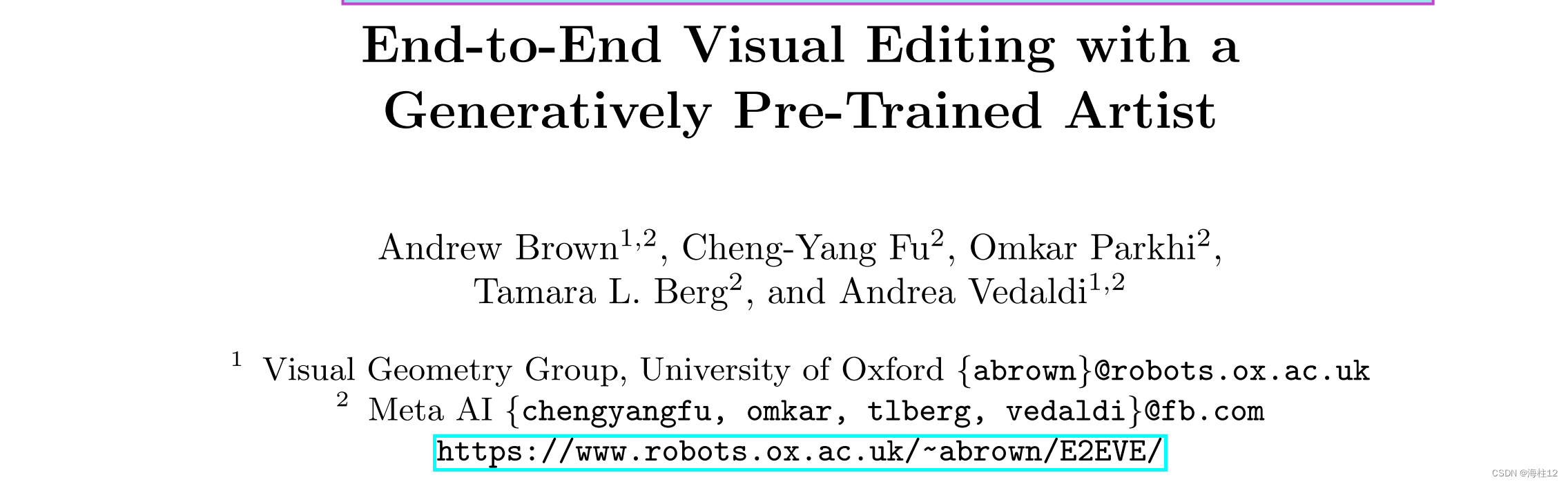 1.通过Generatively Pre-Trained Artist进行端到端的视觉编辑,End-to-End Visual Editing with aGeneratively Pre-Trained Artist。