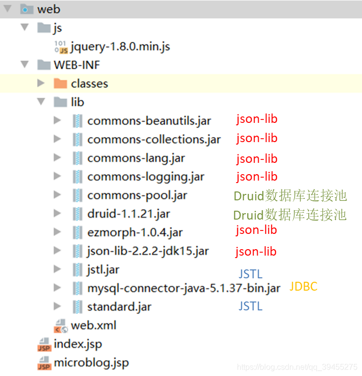 引入的Jar包较多,下图标注了各Jar包的作用: