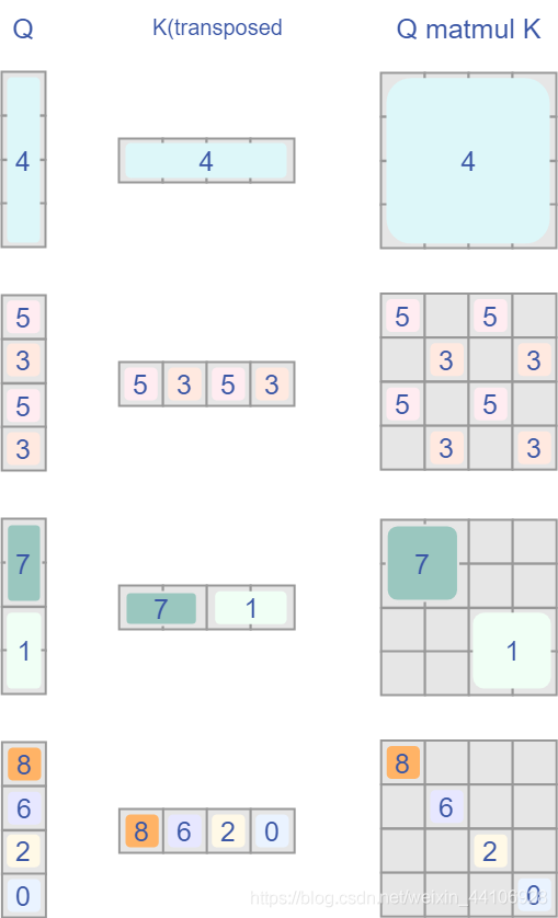 其中, 分别为 Query,Key 和 Value 矩阵,
