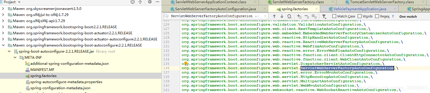 spring-boot-autoconfigure => META-INFO/spring.factory ,工厂对象TomcatServletWebServerFactory是在ServletWebServerFactoryAutoConfiguration自动装配的