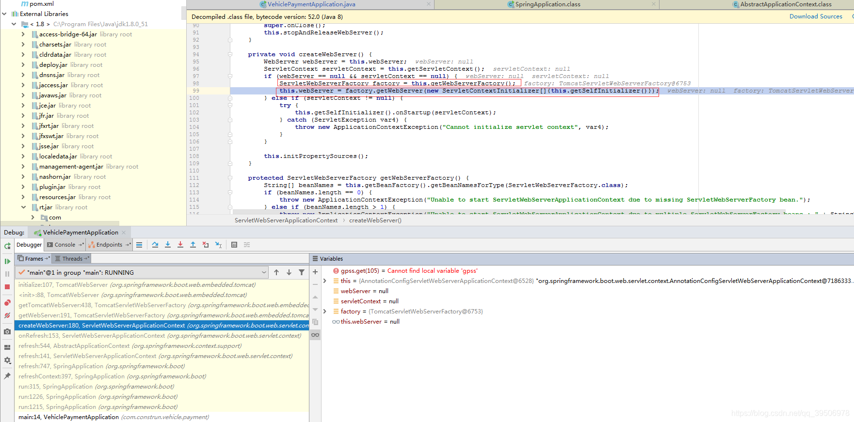 4.createWebServer:180 使用ServeletWebServerFactory获取webServer。