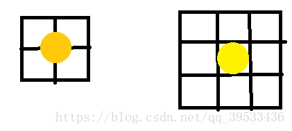 2.场景的搭建,我们要确定小蛇是按步移动还是按格移动,如果按个移动我们最好设成奇数格(方便运算,具体原因如下图,如果是偶数个,小蛇的坐标会在4格的中心,如果设为奇数个,小蛇的蛇身刚好占一个的位置)