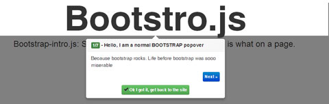 所有用引导的步骤和内容都定义在JS中,它拥有一个完整的API,支持callbacks、keyboard,并允许自定义外观。
