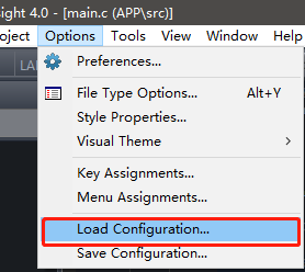 在选项栏找到 Options 选项,选择 Load Configuration(加载配置),将配色文件导入即可