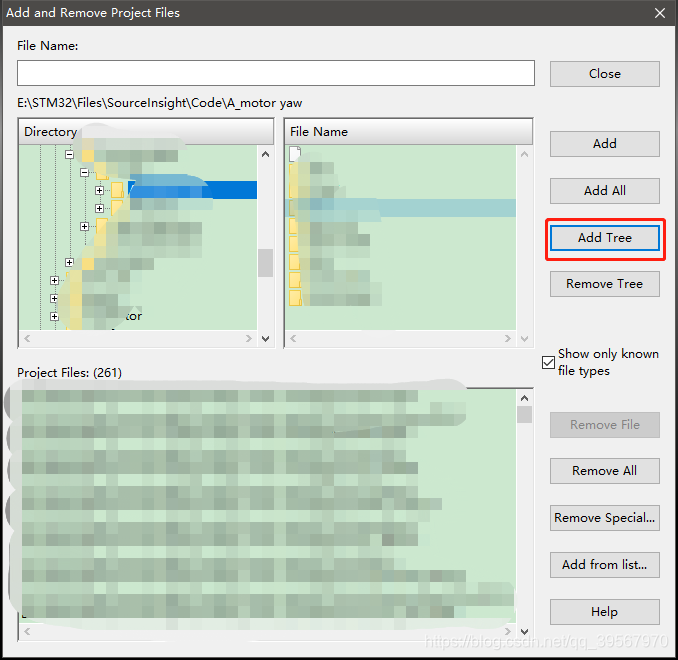 点击 OK 出现如下所示的选项框,选择源文件目录下的所有文件,点击红框标注的 Add Tree