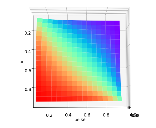 matplotlib 二元变量分析 from matplotlib import pyplot as pltimport numpy as npfrom mpl_toolkits.mplot3d import Axes3Dfrom scipy.special import softmaxfig = plt.figure()ax = Axes3D(fig)X = np.arange(0.1, 1, 0.05)Y = np.arange(0.1, 1, 0.05)X, Y = np.meshgrid(X, Y)# Z = X.
