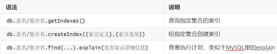 - TTL索引:一种特殊的单字段索引,只能用于date类型的字段,给文档添加过期时间,过期后文档会被删除掉