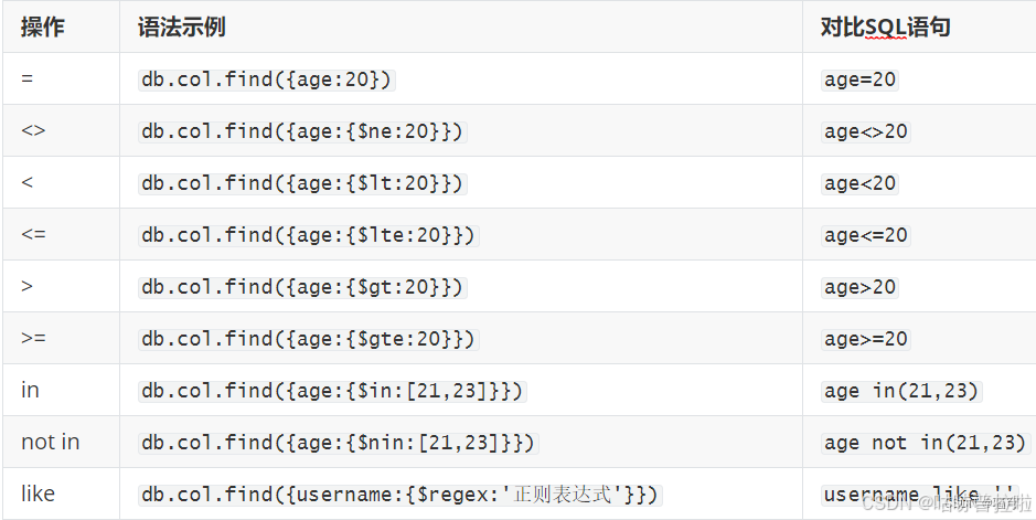 db.users.find( { username:{$regex:'^j.*$'} } )// 查询符合条件的数据,只要name和salary列