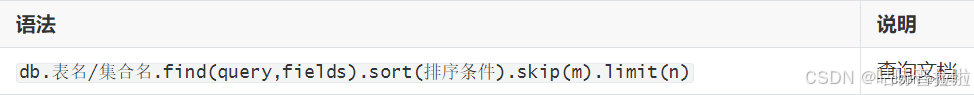 - 排序条件:写成json形式,例如{age:1, money:-1} 表示 按age升序排序,如果年龄相同则按money降序