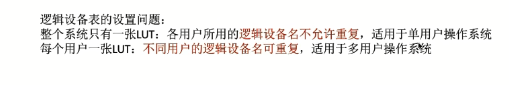 可以为每个用户建立一张逻辑设备表,这样不同用户可以采用同样的逻辑设备名。类似于多用户的文件系统