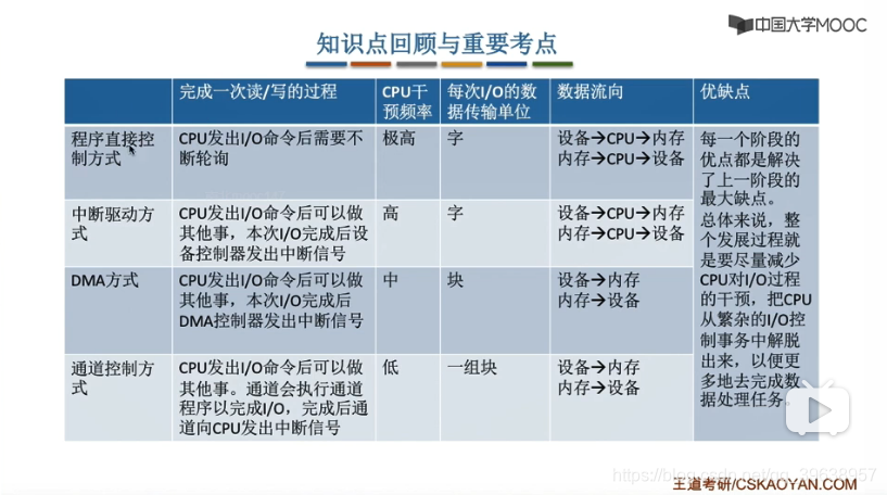 主要用于块设备,以块为单位,且不再需要CPU中转数据。当整个块IO结束后才发出中断。