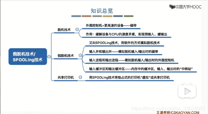 所谓假脱机技术(spooling)就是用软件来实现脱机技术,脱机技术就是先用纸带机将程序预输入到输入磁带,输出时先预输出到输出磁带,这样CPU就不必等待慢速的纸带机了,只需要与磁带打交道即可。