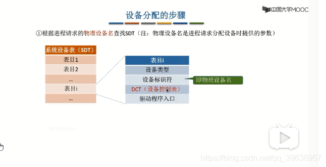 检测设备控制表的状态信息,如果空闲则分配给进程,如果忙碌则将进程挂到该设备的阻塞队列中。同时将对应的IO控制器控制表也分配给进程