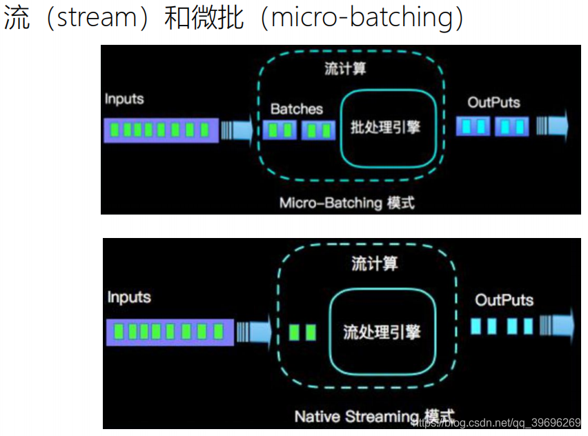 – spark 是批计算,将 DAG 划分为不同的 stage,一个完成后才可以计算下一个