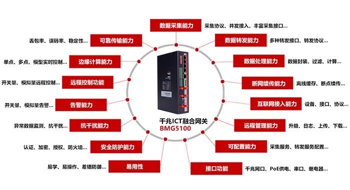 4、ICT融合网关。ICT是信息、通信和技术三个英文单词的词头组合(Information Communications Technology),例如BMG5100多功能融合网关,具备先进的设备接入能力、数据采集能力、边缘计算能力、5G/4G/有线等综合通信传输能力等,实现对物联网系统的大范围、多设备的数据交互和全程控制。