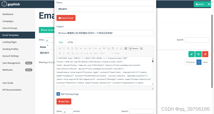 2.3在Email Templates中设置钓鱼邮件的样式诱导用户进入跳转页面