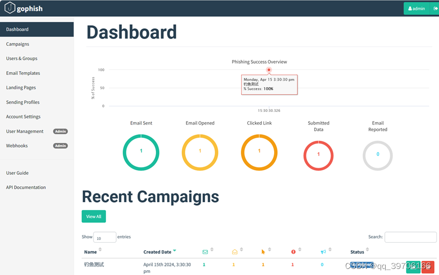 1.5在浏览器输入https://127.0.0.1:3333进入钓鱼邮件控制台界面