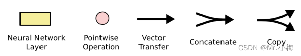 在上图中,每条线都携带一个完整的向量,从一个节点的输出到其他节点的输入。粉红色圆圈表示逐点操作,如矢量加法,而黄色框是学习的神经网络层。行合并表示串联,而行分叉表示其内容被复制,副本转到不同的位置。