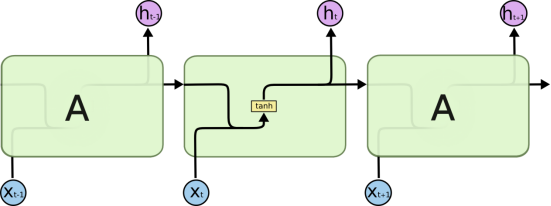 所有递归神经网络都具有神经网络重复模块链的形式。在标准RNN中,这个重复模块将具有非常简单的结构,例如单个tanh层。