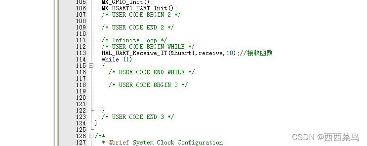 HAL_UART_Receive_IT(&huart1,receive,10);//接收函数