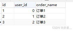 举例说明涉及到的两个表,一个user和一个order表,具体表的内容如下: