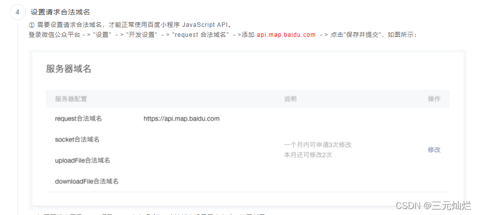 3、在小程序端配置请求合法域名:https://api.map.baidu.com