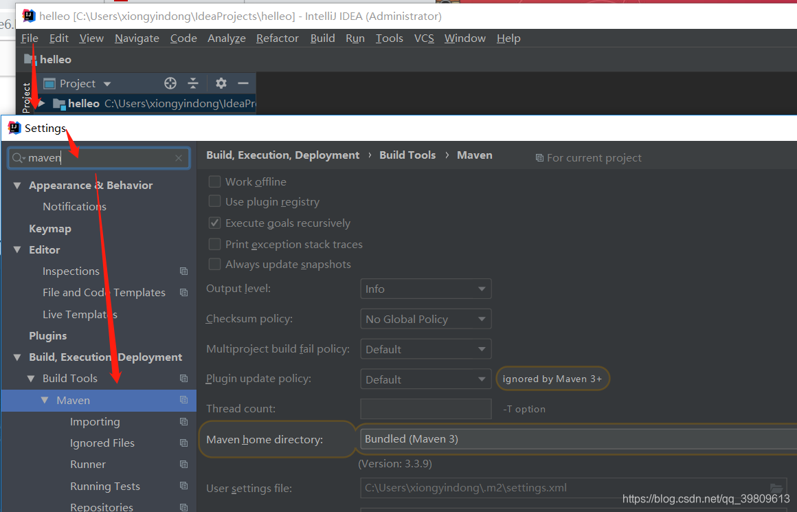 选择本地解压后的maven地址:且配置好setting文件。自动加载我们文件中的maven库的仓库地址